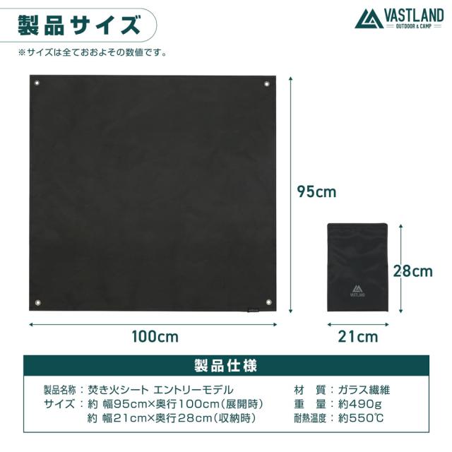 VASTLAND 焚き火シート 焚き火台シート エントリーモデル 耐熱素材 ペグダウン 95cm×100cm