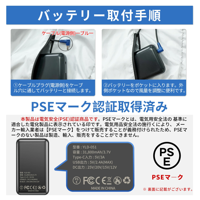 ※本製品は「株式会社 空調服」 の 「空調服 ベスト 製品」とは互換性がございません。ご注意ください。