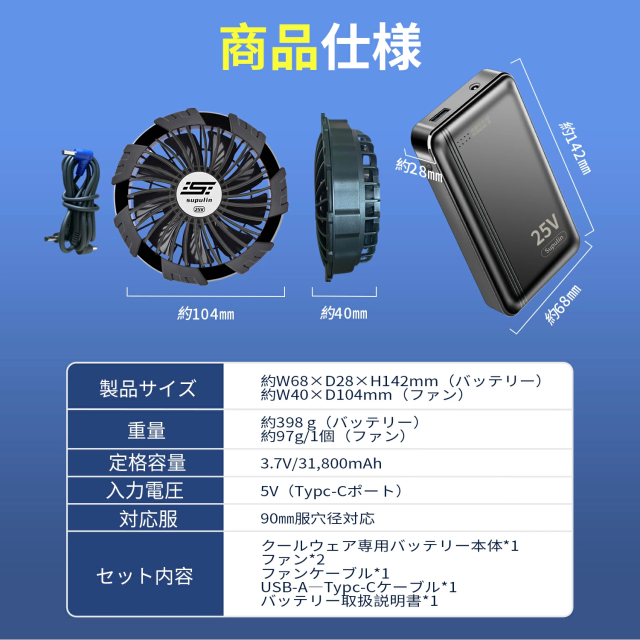 ※バッテリーとファンはSupulinシリーズ 専用です。