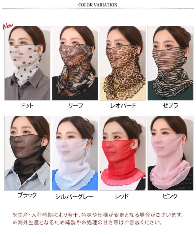 ネックカバー フェイスマスク 夏用 柄 プリント UV フェイスカバー マスク おしゃれ 冷房対策 紫外線対策 日焼け ガード タートルネック 薄手 シアー テニス ゴルフ 首 シワ隠し ネックウォーマー ショール