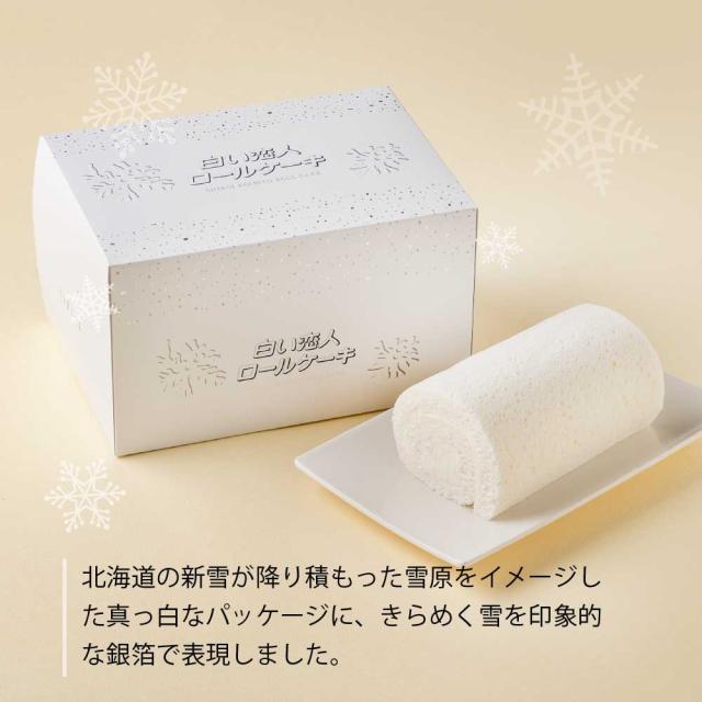 | 商品説明 | 「白い恋人」のホワイトチョコレートクリームを包んだ真っ白なロールケーキ 「白い恋人ロールケーキ」は、「白い恋人」と同じホワイトチョコレートを使用したふわふわなクリームを、卵黄を使用せずに卵白をベースに配合して白く焼き上げたしっとり食感の生地で包みこんでいます。 北海道の新雪が降り積もった雪原のようにまっしろなロールケーキは、一口食べるとミルキーでコクのある味わいが口の中に広がります。 パッケージデザインは、商品コンセプトである北海道の新雪が降り積もった雪原をイメージした真っ白なパッケージに、きらめく雪を印象的な銀箔で表現しています。 |