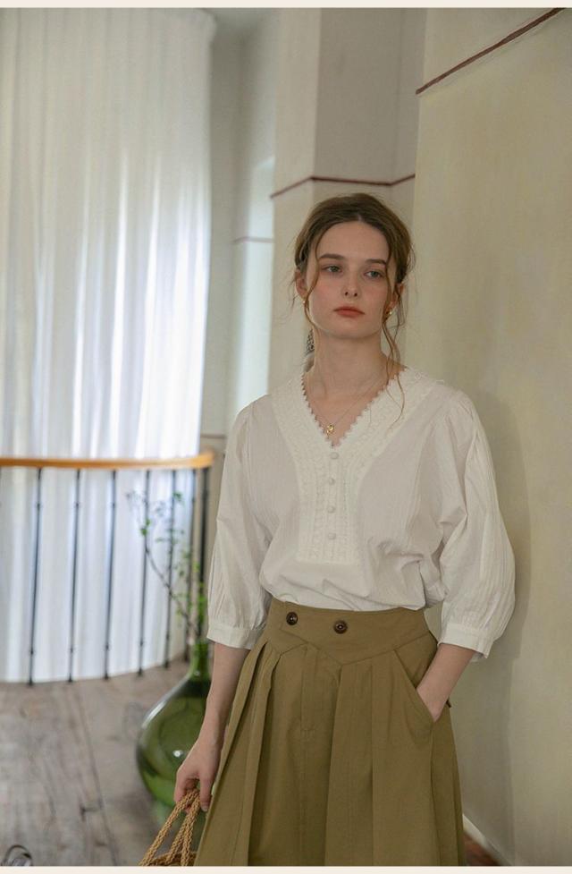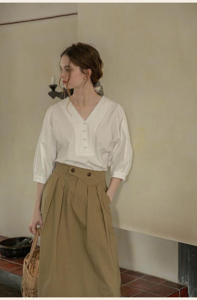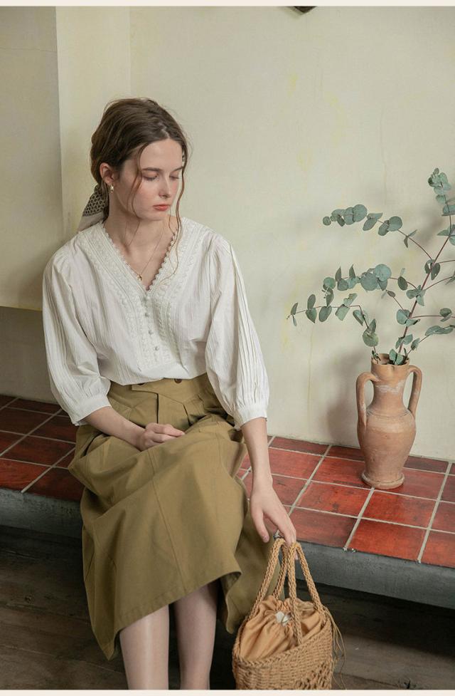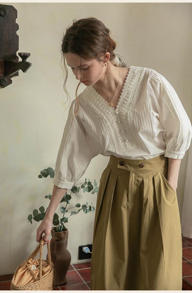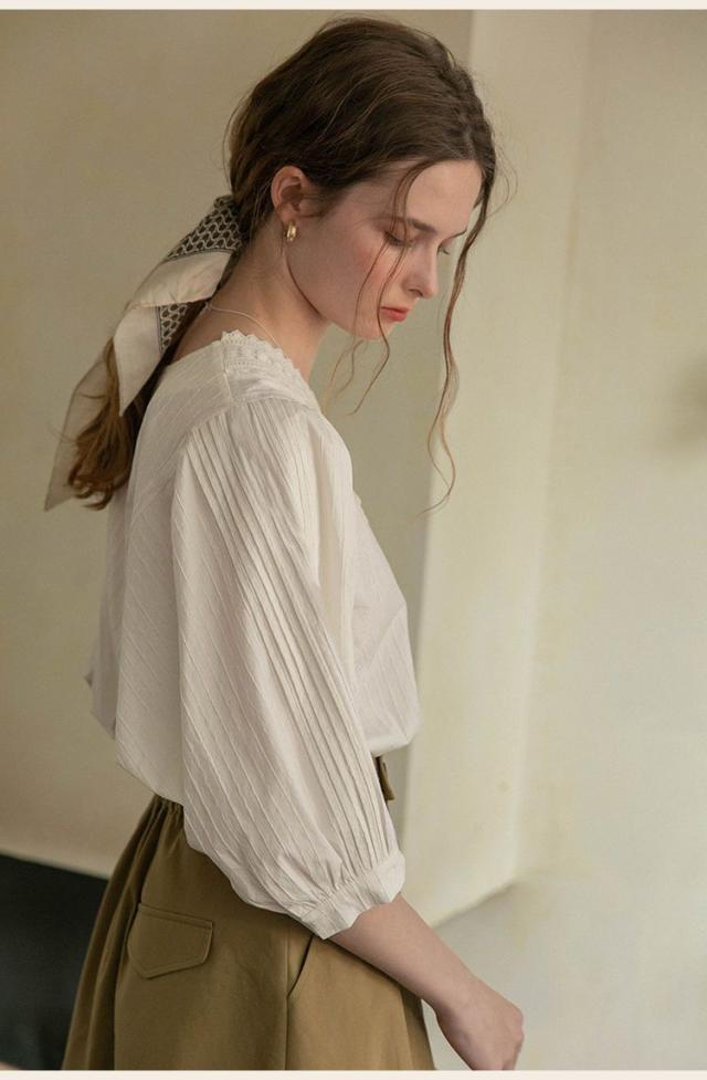 シャツ ブラウス ブラウス七分袖 7分袖 レースピンタック vネック レディース 無地 着痩せ おしゃれ 通勤 高級感