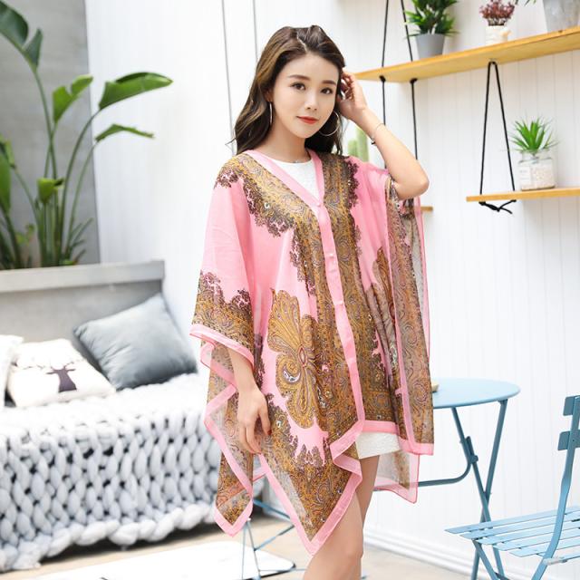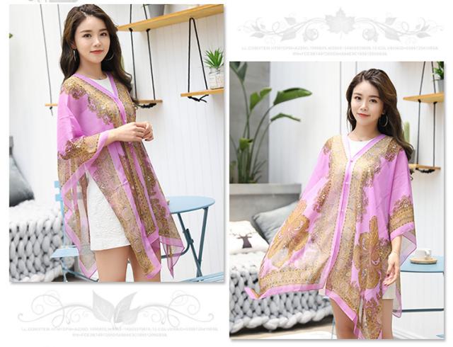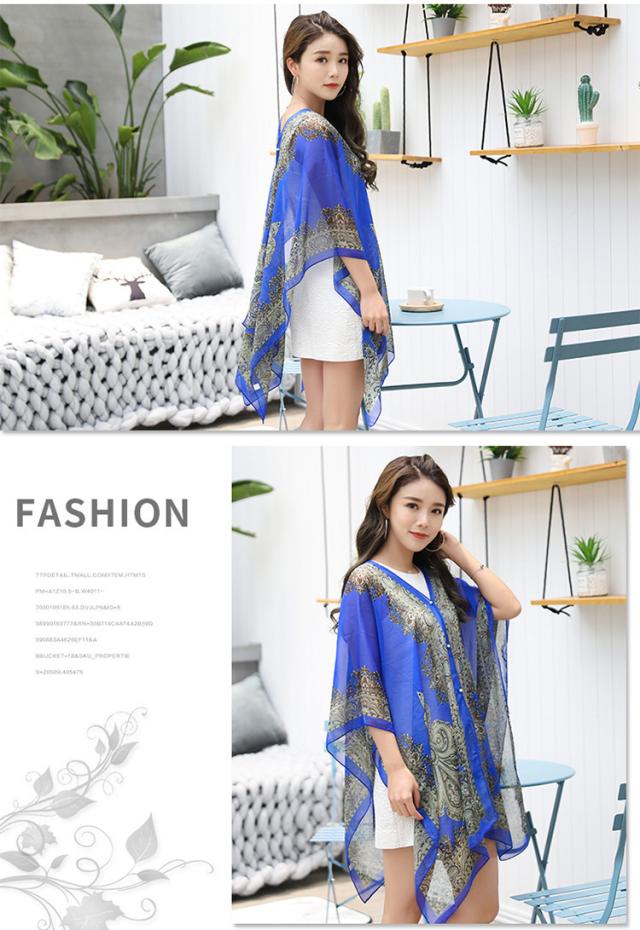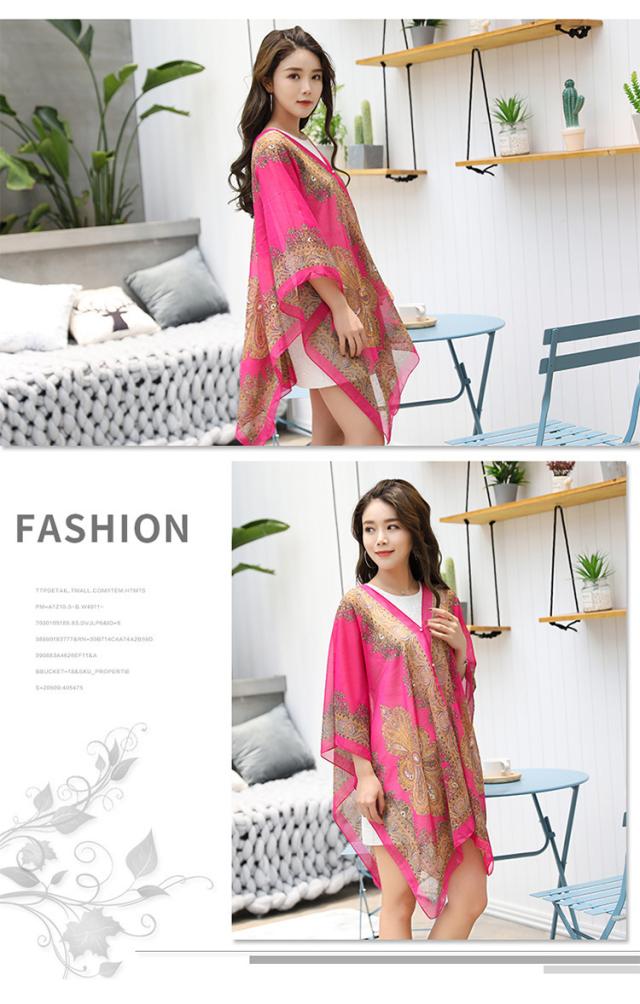 15色 ショール エスニック風 シフォン ポンチョ ストール 肩掛け UV対策 冷房対策 多用途 シルクスカーフ 大判 羽織り 上品 きれいめ