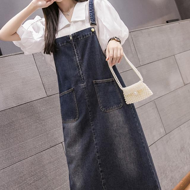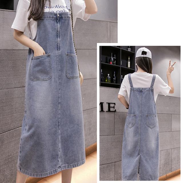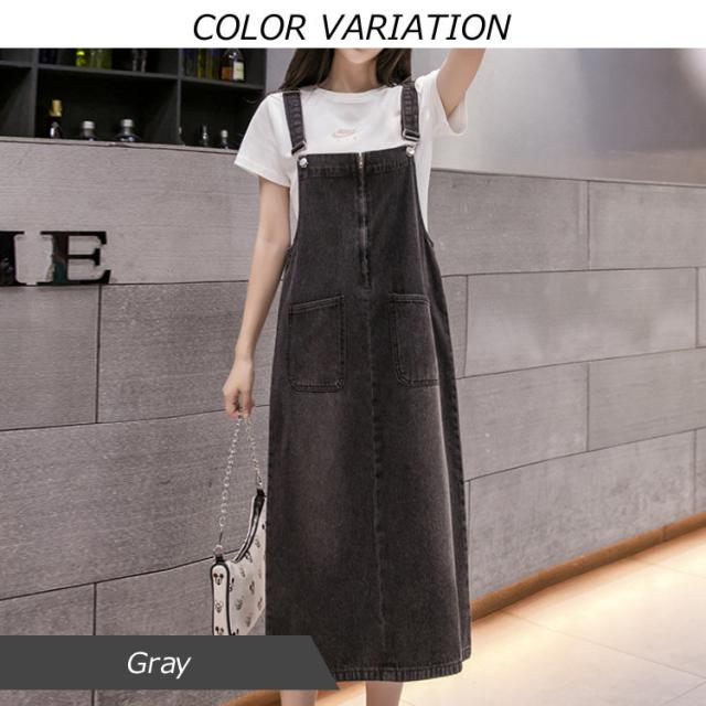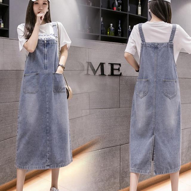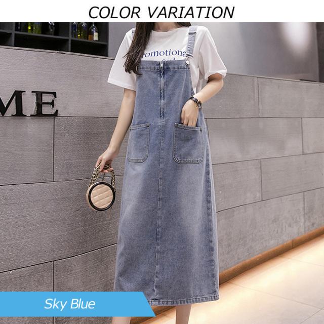 レディース 女性用 ウィメンズ スカート ワンピース 袖無し ノースリーブ ゆったり 妊婦 マタニティ ロング丈 デニム