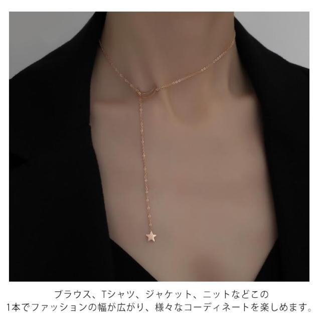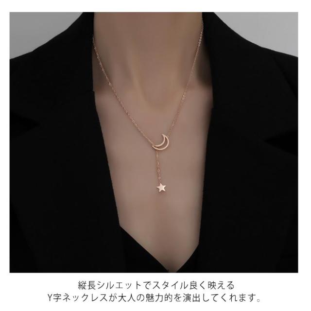 全2色 Y字 ネックレス ラリアット 送料無料 レディース 優雅 月星 ロング ネックレス おしゃれ アクセサリー つけっぱなし ジュエリー ニッケルフリー 金属アレルギー 記念日 誕生日 ギフト プレゼント