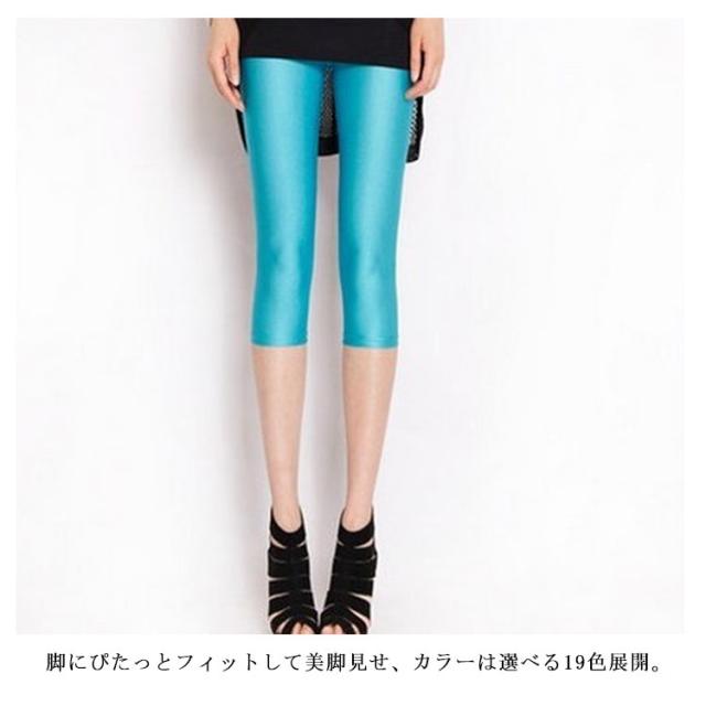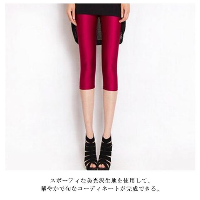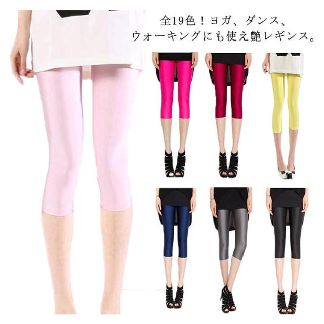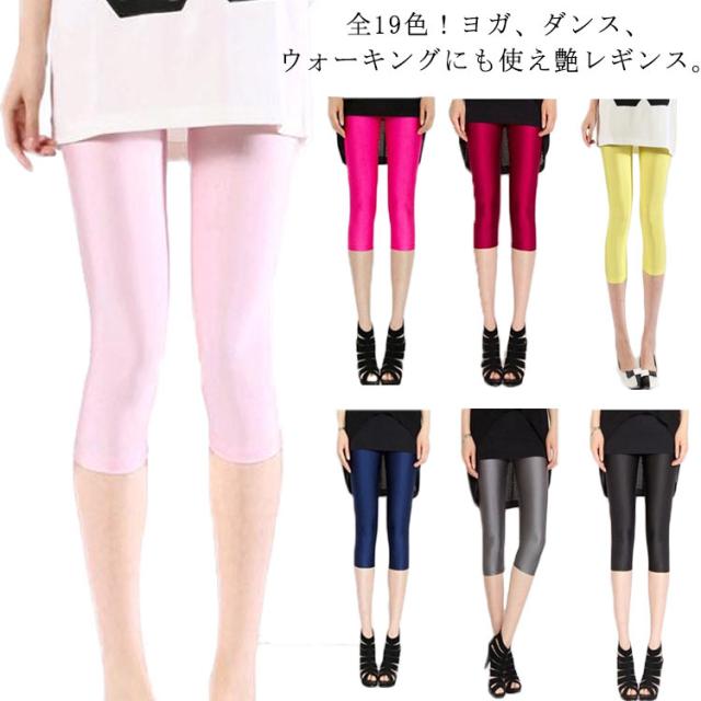 全19色!ツヤレギンス 7分丈レギンス レギンス レディース スキニーパンツ 夏レギンス レギンスパンツ タイト ボトムス レギパン 無地 ダンス 光沢感 美脚 薄手