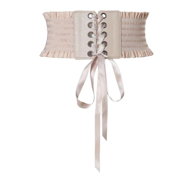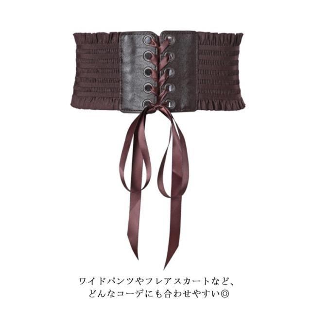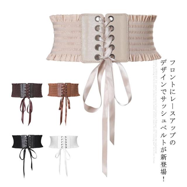 サッシュベルト コルセット ベルト レディース レースアップ ゴム リボン フリル シャーリング ワイドベルト 送料無料