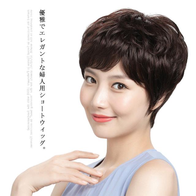 ウィッグ ミセス 婦人用 フルウィッグ ウェーブ カール ショート つけ毛 通気性 優雅 軽量 全かつら ふんわり 母の日 50代60代70代 お出かけ 結婚式 イベント