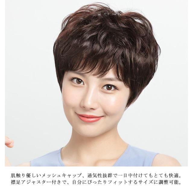 | 優雅でエレガントな婦人用ショートウィッグ。 動きのあるウェーブでふんわりボリューミーながら、おもくない軽やな印象。 帽子感覚ですっぽりかぶるだけ!装着がとても簡単。急なお出かけにも便利。 薄毛、白髪、円形脱毛症など頭頂部の問題はこれ一つでしっかり解消! 肌触り優しいメッシュキャップ、通気性抜群で一日中付けてもとても快適。 襟足アジャスター付きで、自分にぴったりフィットするサイズに調整可能。 デイリーに使える飽きのこないナチュラルスタイル、ちょっとしたお出かけや冠婚葬祭などイベントでも大活躍。 | |