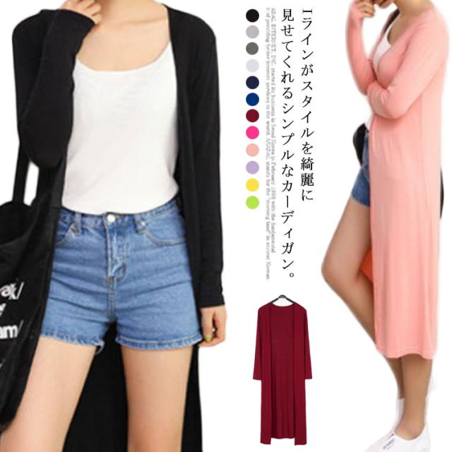 昨年よく売れたitem全12色再登場!カーディガン ロング レディース 送料無料 ロング丈 マキシ丈 ニットソーカーディガン ロングカーデ ロングカーディガン 春 夏 秋 長袖 カジュアル 無地 モーダル 冷房対策 紫外線対策 羽織 アウター 送料無料
