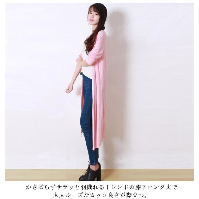 | Iラインがスタイルを綺麗に見せてくれるシンプルなカーディガン。 薄手だからバッグの中に入れて持ち運びもできるので、UV対策、冷房対策にも使える優秀item。 ボタンなしなのでさっと着られて便利、襟元から裾まですっきり綺麗なシルエットに。 さらっとして落ち感があり、肌にも負担をかけにくく、お手入れがしやすく、シワにもなりにくい素材です。 かさばらずサラッと羽織れるトレンドの膝下ロング丈で大人ルーズなカッコ良さが際立つ。 豊富なカラーバリエーション展開でカジュアルからキレイ目まで相性バッチリの着回し力! 今期は細身ボトムだけでなくトレンドのガウチョパンツなどを合わせるのも◎ | |