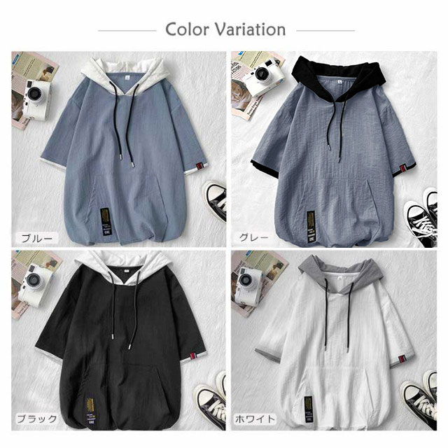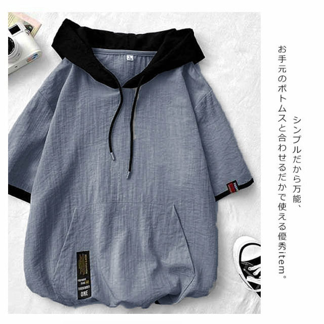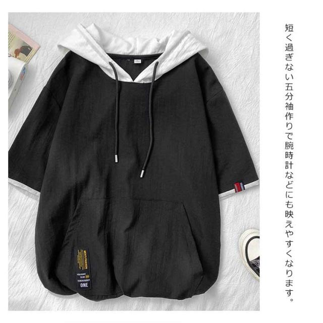 全4色×5サイズ!夏服 5分袖パーカー Tシャツ パーカー メンズ 五分袖 トップス フード付きTシャツ フード付きパーカー カジュアル プルオーバー 夏 春夏 冷感素材 涼しい送料無料