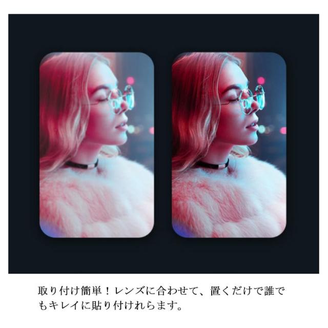 | Iphone12シリーズ用全面保護カメラレンズカバー。 ピッタリフィットし、しっかり保護してくれるフレームと強化ガラスフィルム一体型カメラレンズカバー。 0.2mm超薄、 透過率99%超えの透過性高いフィルムで写真の美しさが損なうことがありません 撥油コーティング加工されているため、耐油性に優れ、指紋付きにくく、付着した汚れがも簡単に拭き取れます。 取り付け簡単!レンズに合わせて、置くだけで誰でもキレイに貼り付けれらます。 | |
