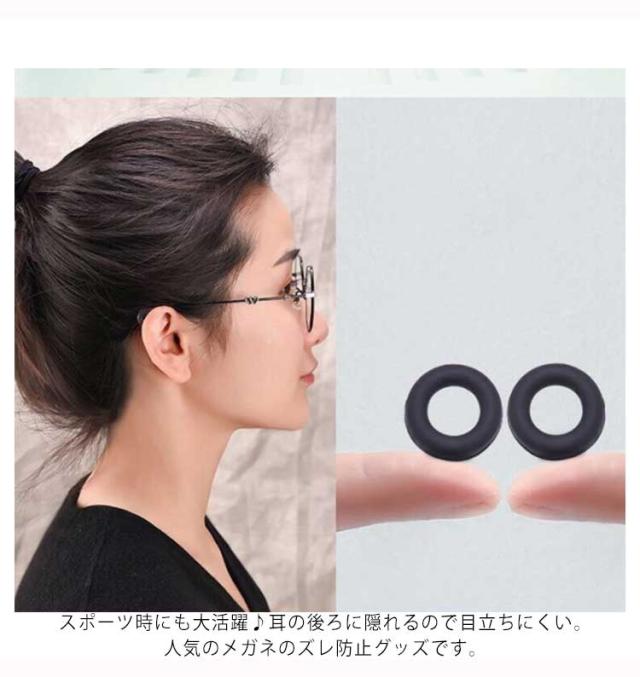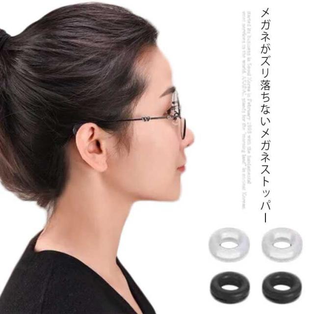 メガネストッパー 眼鏡ストッパー 滑り止め 丸型 リング 黒 2組セット(4個) 眼鏡 ズレ落ち 送料無料 ズレ防止 耳 固定 集中力アップ めがね メガネ ストッパー 落下防止 簡単取り付け フィット シリコン