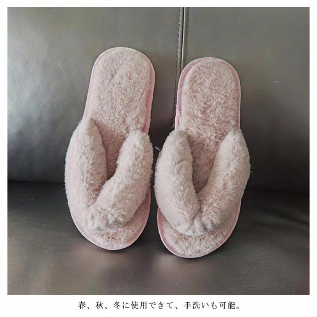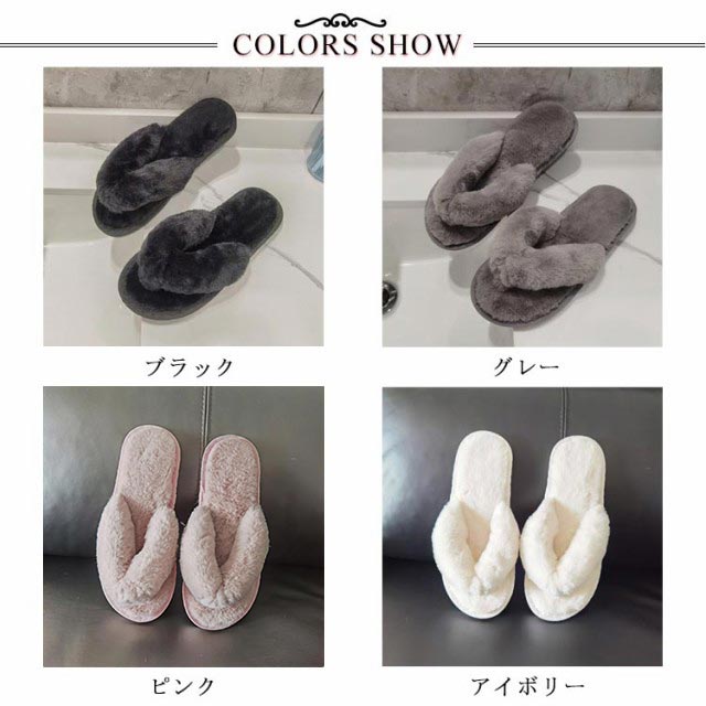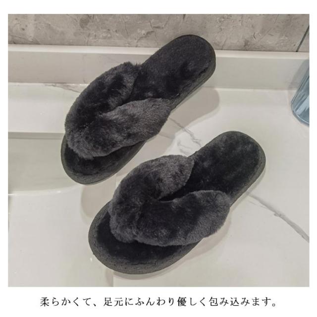 ファースリッパ 冬 レーディス トングスリッパ ファー サンダル ボアスリッパ 秋冬 室内 履き ふわふわ ルームシューズ ルームスリッパ フェイクファー 前開き シンプル 無地 暖かい かわいいモコモコ