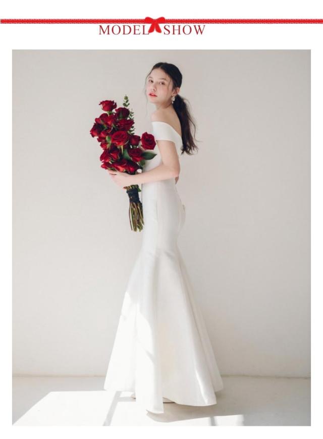 ウェディングドレス マーメイドライン ロングドレス ウェディング スレンダーライン ウエディング オフショルダー パーティードレス フィッシュテール 半袖 結婚式 ワンピース 海外 挙式 ホワイト 白 ロング丈 ドレス