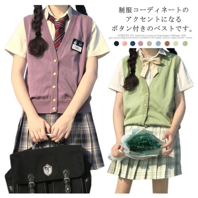 9色展開 ベスト 前開き レディース スクールベスト 制服 送料無料 高校 スクール 綿 洗える ボタン 中学 学生 学校 通学 女子 人気 女子高生 学生服 大きい 小さい 入学 上品 シルエット