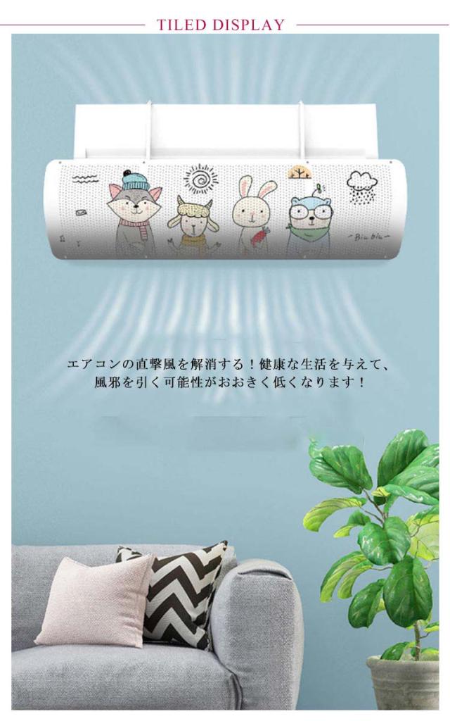 | 健康的な生活を与えてくれます、エアコンカバー エアコンの直撃風を解消する!健康な生活を与えて、風邪を引く可能性がおおきく低くなります! デザインがきれいで、エアコンの冷たい風と暖かい風が直接に正面から吹くことを防げます。 工事不要で穴あけも不要、掛けるタイプでエアコンや壁を傷つけません。 通気穴がついて、冷却効果に影響しません。 | |