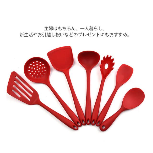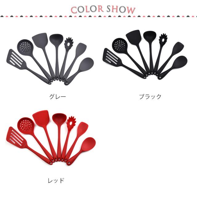 | キッチンからテーブルまで美味しく彩り!便利な調理用品セットです。 食用シリコン素材で作られており、耐熱性抜群、食器に傷つけにくいです。 7点セットなので、和食ではなく、洋風料理、中華料理、幅広く調理に活躍できます。 持ち手は大きすぎず、丁度いい大きと長さので、初心者も持ちやすく使いやすい。 主婦はもちろん、一人暮らし、新生活やお引越し祝いなどのプレゼントにもおすすめ。 | |