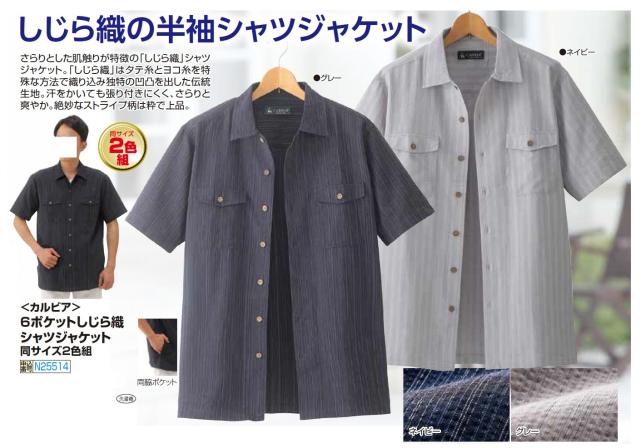 カルビア 6ポケットしじら織 シャツジャケット 2色組 ジャケット カジュアルシャツ 半袖 ストライプ メンズ 紳士服 シニア 男性 グレー ネイビー 灰色 紺色 シンプル 上品 しじら織り ファッション 40代 50代 60代 70代 80代 父の日 お父さん 春夏 uka p25514 p26942