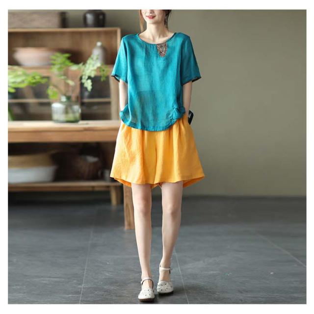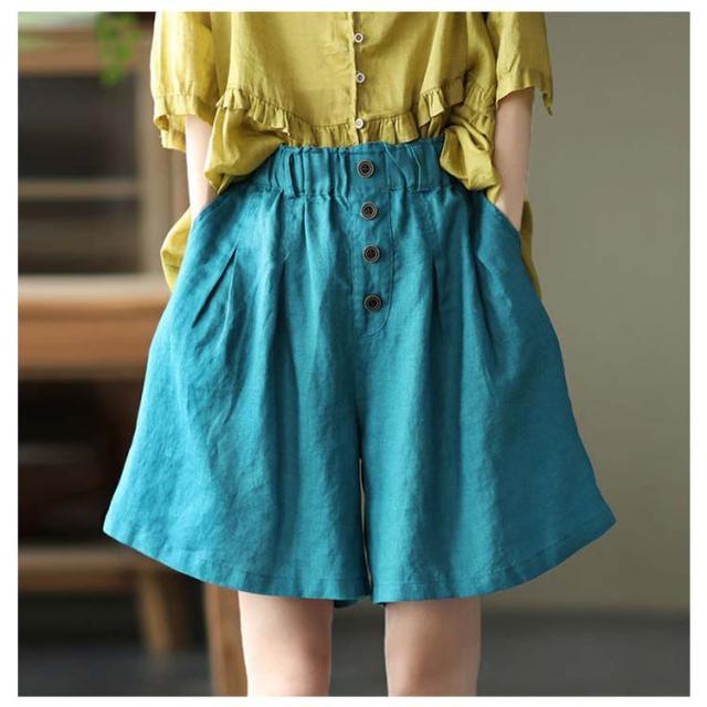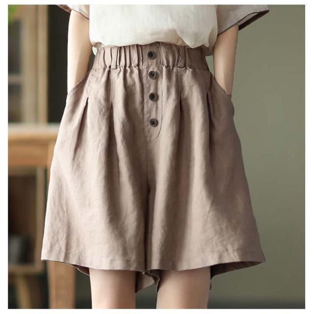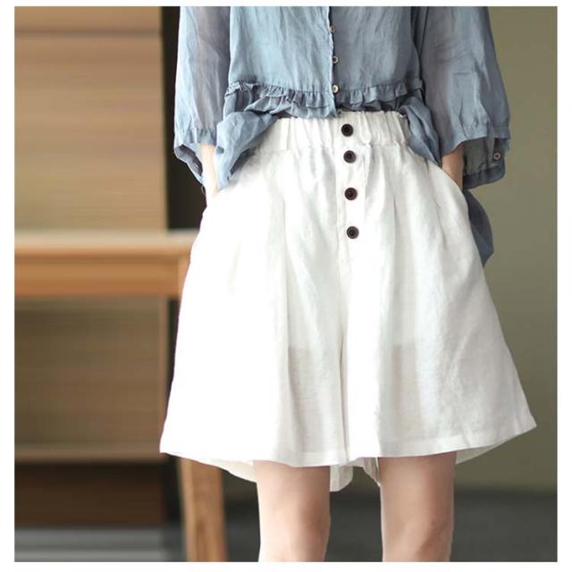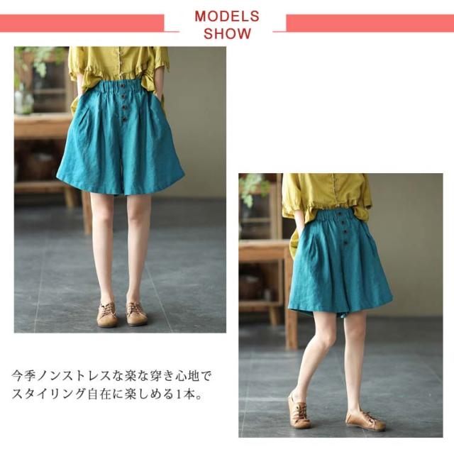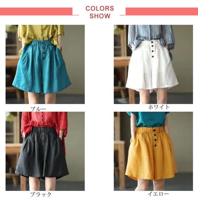 全5color×5サイズ!パンツ リネン 麻混 綿麻 ワイドパンツ ハーフパンツ レディース リネンパンツ ウエストゴム ナチュラル カジュアル シンプル 無地 春夏