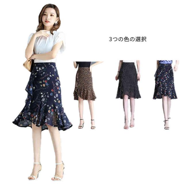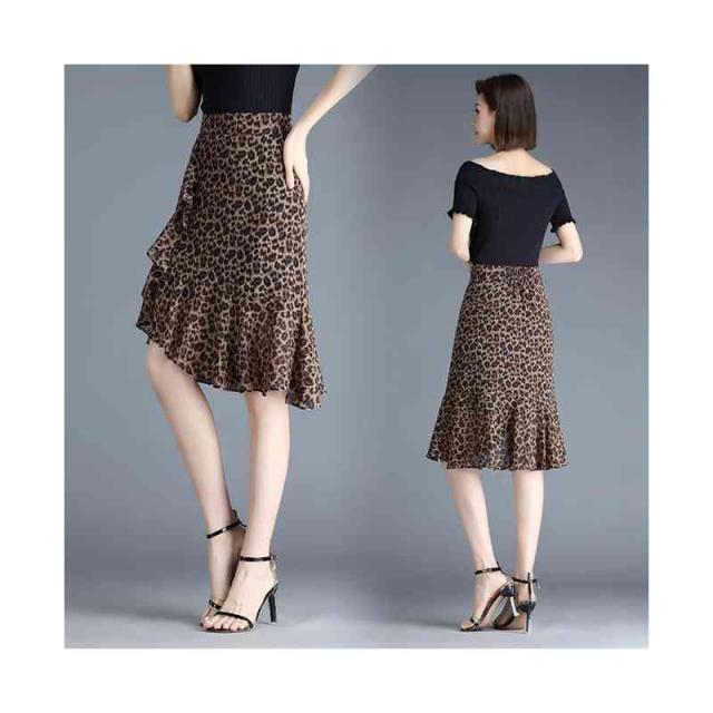 ヒョウ柄 スカート レディース 春夏 シフォンスカート マーメイドスカート フリルスカート ハイウエスト ミディアム丈 ペンシルスカート シフォン ボトムス スカート シンプル カジュアル セクシー フェミニン 送料無料