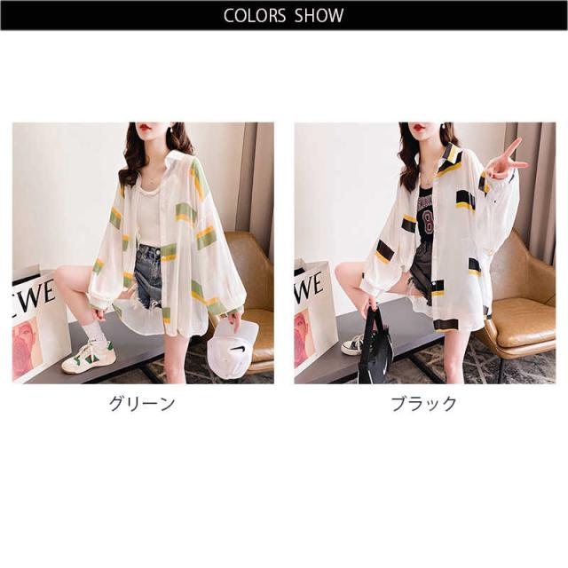 シャツカーディガン レディース ロング 春夏 ゆったり ストライプシャツ サマーカーディガン 薄手 紫外線防止 日焼け止め UVカット ラッシュガード パーカー 着痩せ折襟 長袖 送料無料