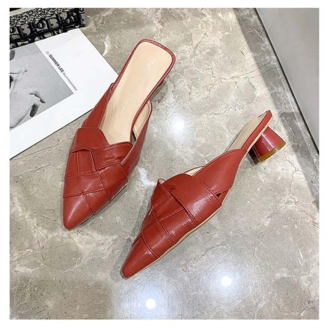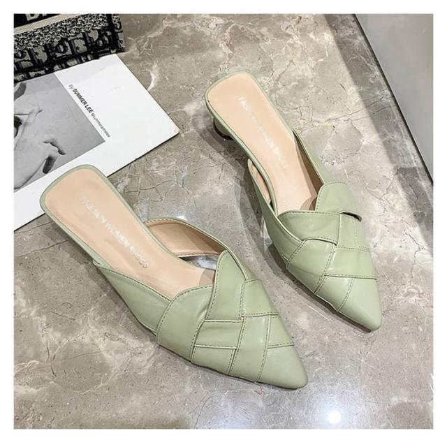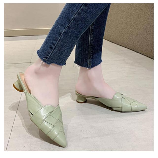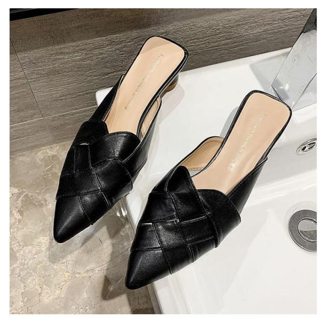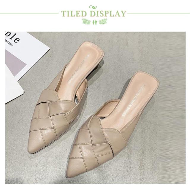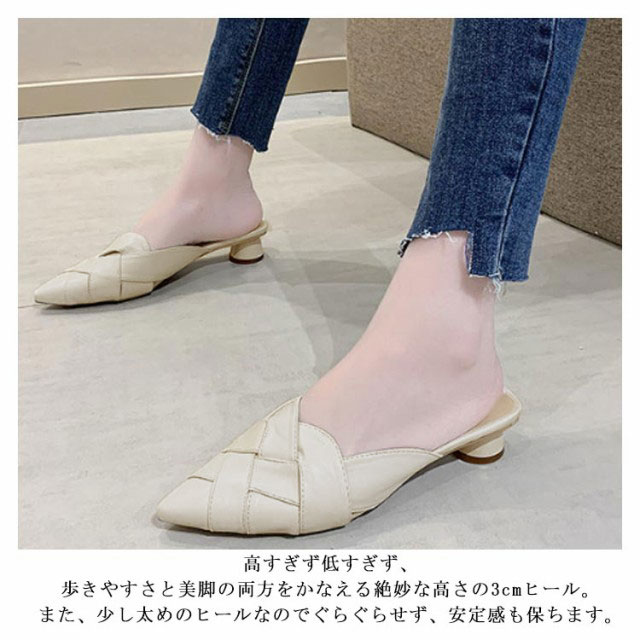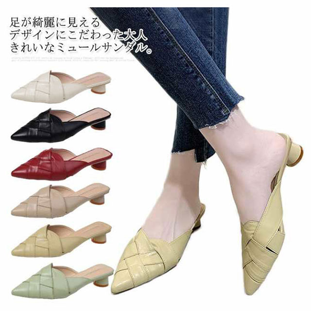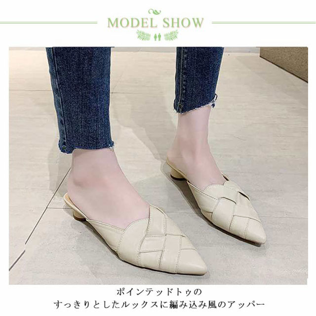 22.0cm-25.0cm ミュール サンダル 編み込み レディース グルカサンダル ローヒール 太いヒール 春夏 通勤 デイリー ポインテッドトゥ クロス編み 前詰まり ブラック ベージュ ホワイト 美脚 韓国風 きれいめ 大人