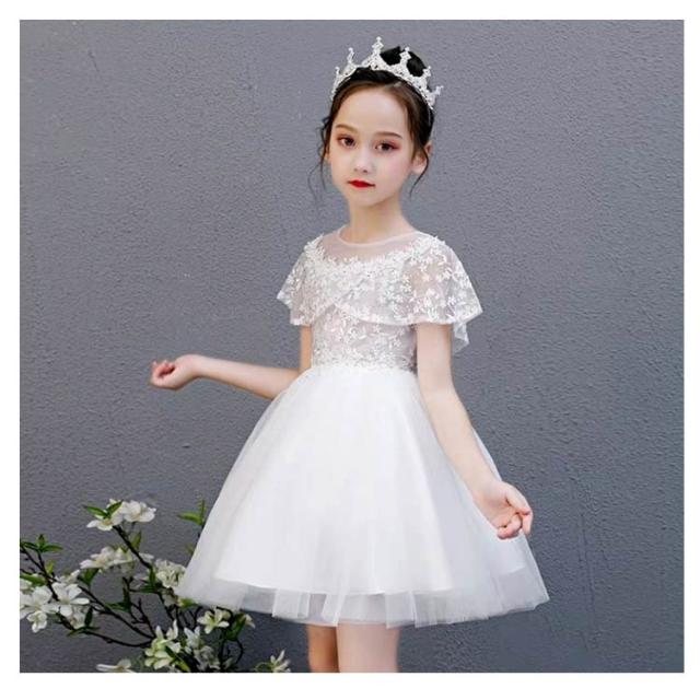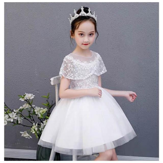 ドレス キッズドレス チュール レース ワンピース 半袖 フレンチスリーブ パーティードレス 刺繍 フォーマル 結婚式 発表会 七五三 写真撮影 花童 花嫁 姫系 普段着 デイリー 110 120 130 140 150 160 白 ホワイト