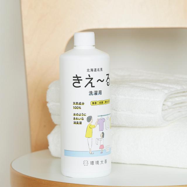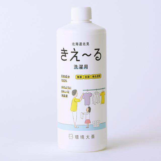 仕上げ剤 きえ〜るH 洗濯用 消臭剤 500ml ( 消臭液 防カビ 抗菌 部屋干し ニオイ 天然成分100% 日本製 洗濯用品 消臭 生乾き臭 室内干し 善玉活性水 無香 洗濯機 )