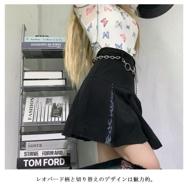 レオパード切り替え!プリーツスカート ミニ ショートスカート ミニスカート おしゃれ かわいい ダンス衣装 着?せ ストリート系 原宿系 S M L XL