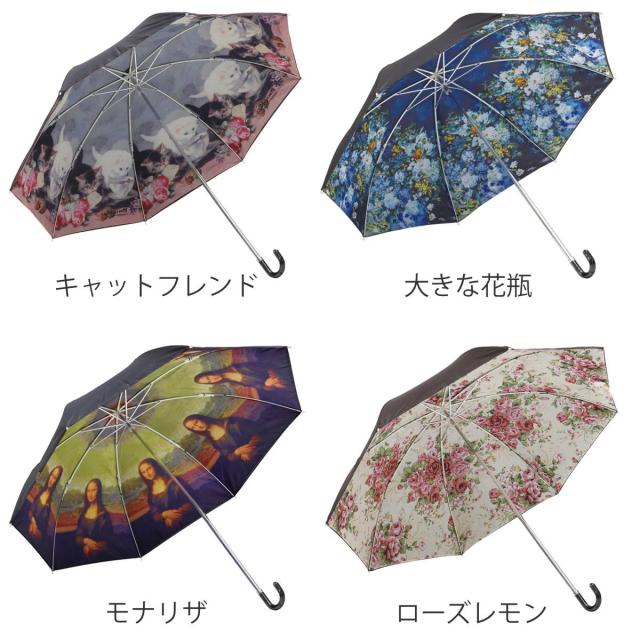 折りたたみ傘 晴雨兼用 名画折りたたみ傘 ( 傘 かさ 名画 名画シリーズ UVカット 雨傘 日傘 ひがさ 折り畳み 作品 雑貨 猫 花 モナリザ ローズ キャット 大きな花瓶 グッズ コンパクト おしゃれ プレゼント アンブレラ )