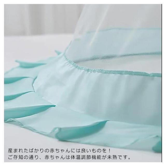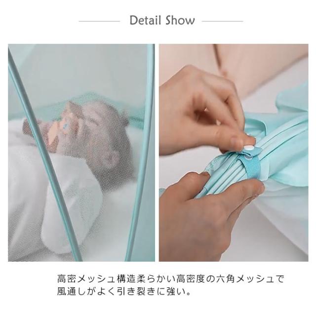 | ■1/2遮光シート設計照明をつけていても赤ちゃんは快適に眠りにつける。 ■高密メッシュ構造柔らかい高密度の六角メッシュで風通しがよく引き裂きに強い。 ■蚊取り線香なしに、自然に蚊や虫を避けられます。 ■空調の風も防いでくれるので、体を冷しすぎません。 ■産まれたばかりの赤ちゃんには良いものを! ■ご存知の通り、赤ちゃんは体温調節機能が未熟です。 ■クーラーにあたると、すぐに手足が冷えてしまいます。 ■寒くても「寒い」ってママに伝えられない赤ちゃん。 ■ベビー蚊帳を使えば、空調の風から守り体の冷えすぎを防げます。 | |