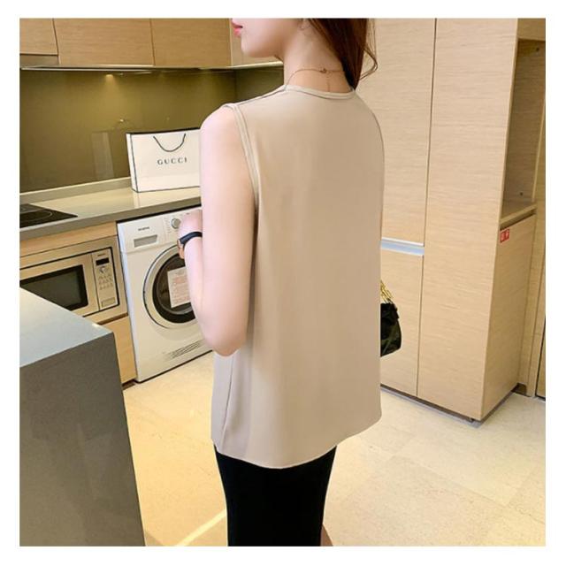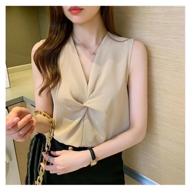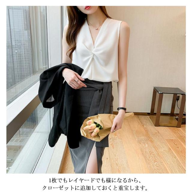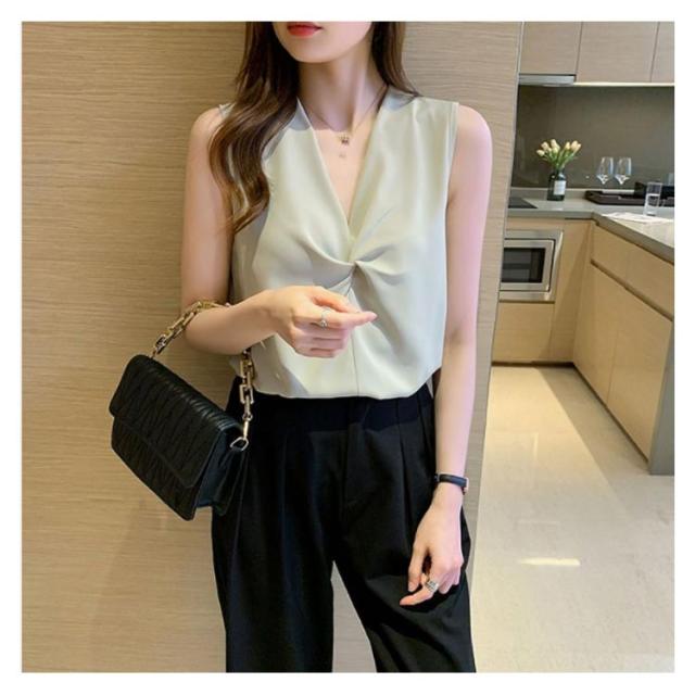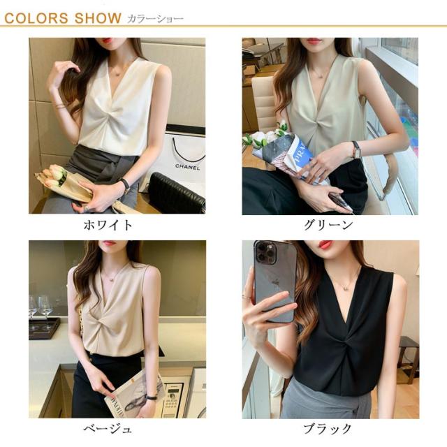 トップス レディース ブラウス ノースリーブ 胸 フリル クロス リボン Vネック シフォンブラウス 通勤 オフィス きれいめ 黒 白 緑 ベージュ 韓国ファッション OL 二次会 パーティー 20代 30代 40代【送料無料】