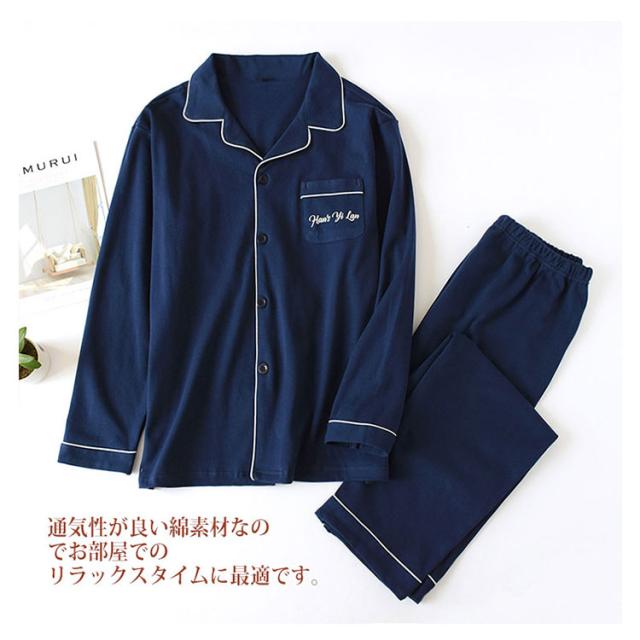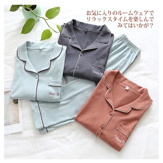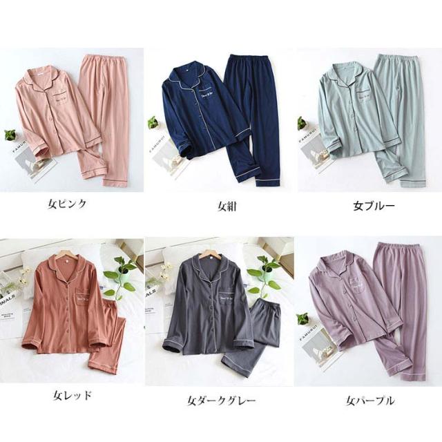 ペアパジャマ 前開き ペアルック カップル 綿100% レディース 無地パジャマ メンズ レディース 紳士 ルームウェア 上下セット 長袖パジャマ 長ズボン 長袖 春夏秋冬 部屋着 贈り物 プレゼント 誕生日 夫婦 結婚 お祝い 母の日 送料無料