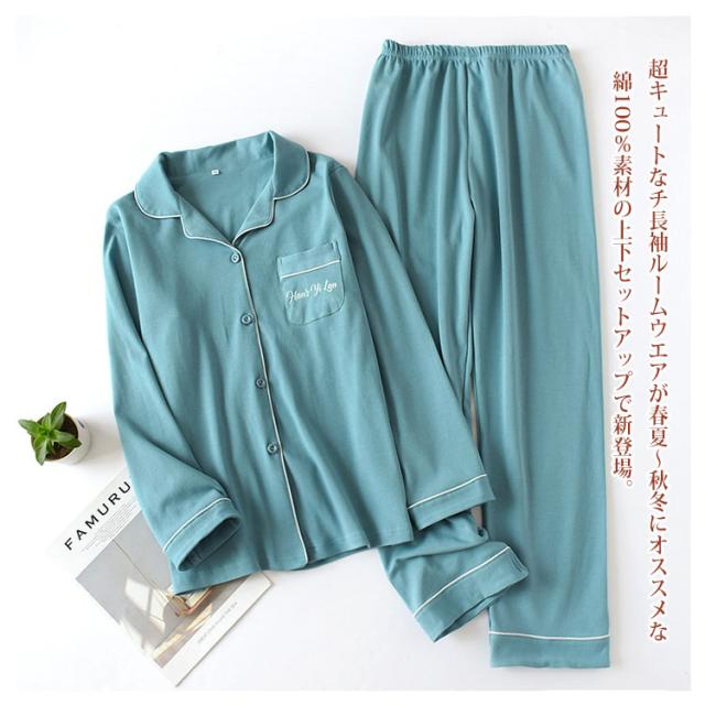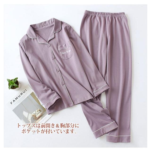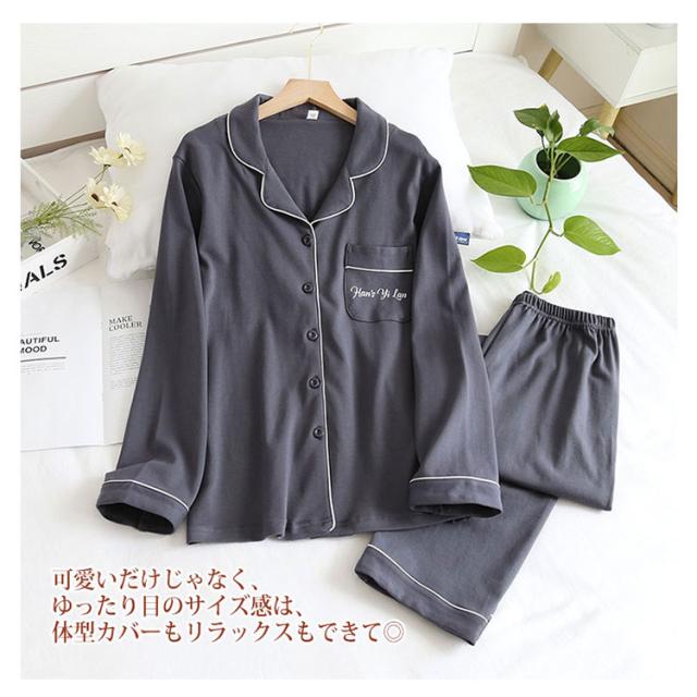 | 睡眠というのは一生のうちの3分の1ほども時間を費やすもの。 お家でゆったり過ごす時間も大切。 お気に入りのルームウェアでリラックスタイムを楽しんでみてはいかが? 超キュートなチ長袖ルームウエアが春夏〜秋冬にオススメな綿100%素材の上下セットアップで新登場。 トップスは前開き&胸部分にポケットが付いています。 パンツはウエストゴム仕様でゆったりと着用頂けます。 通気性が良い綿素材なのでお部屋でのリラックスタイムに最適です。 抜群な吸湿・放湿性で汗をかいても乾きやすく、お風呂上がりにも気持ちの良い素材です。 可愛いだけじゃなく、ゆったり目のサイズ感は、体型カバーもリラックスもできて | |