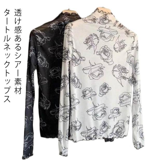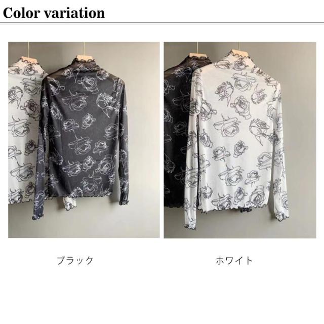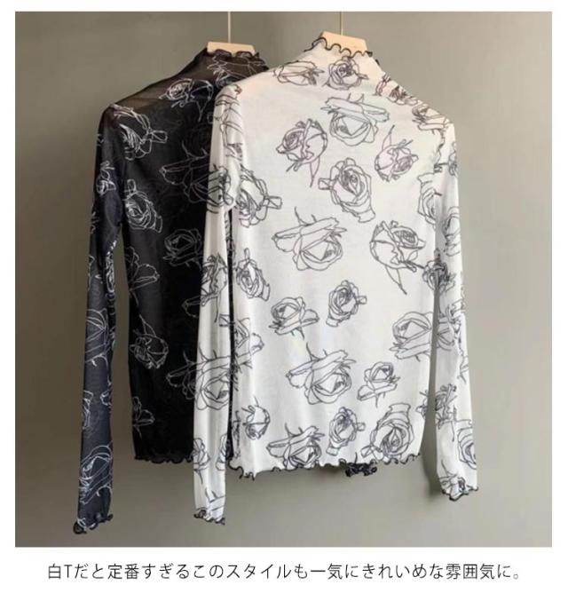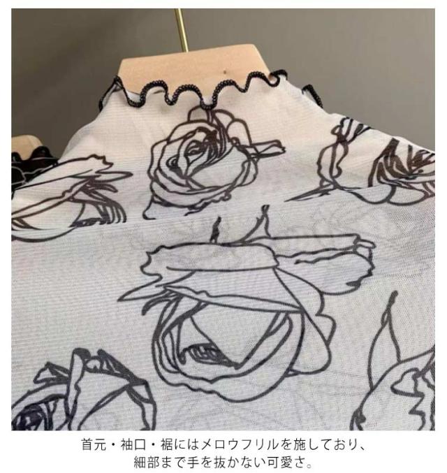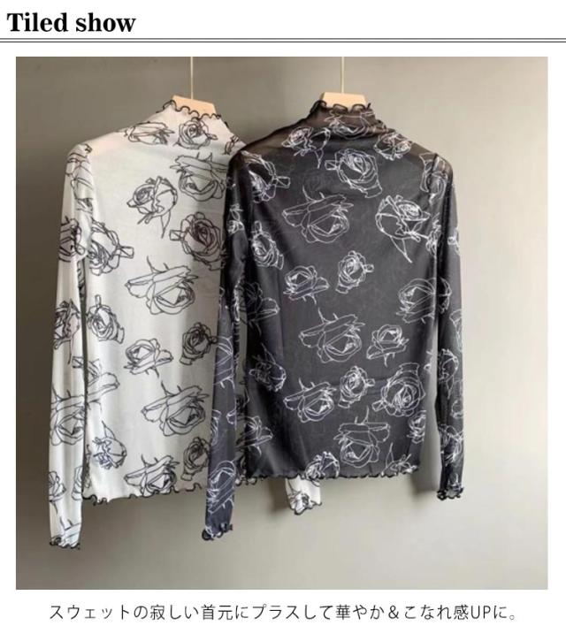 肌隠し インナー 気になる露出をカバー トップス シアーシースルー レディース レース レーストップス 花 ローズ レイヤードトップス ブラウス ハイネック レースインナー 長袖 透け