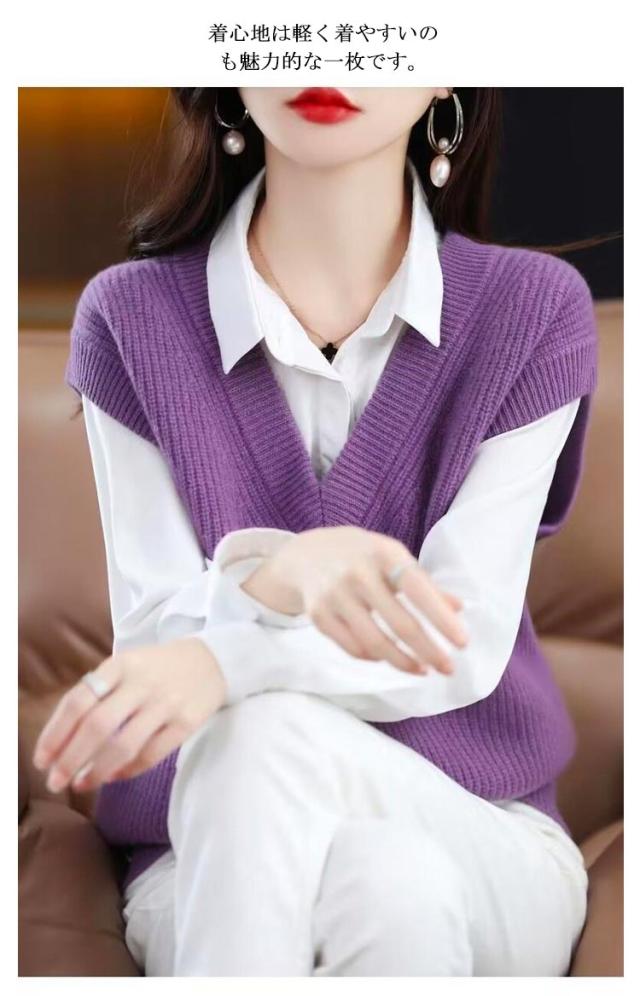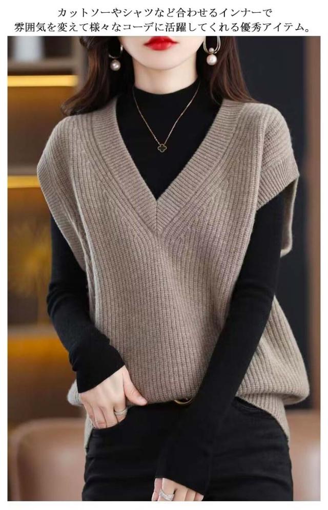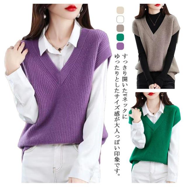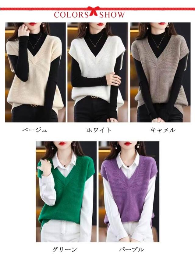 ニット ベスト レディース プルオーバー 秋冬 ニットベスト トップス Vネック ノースリーブ 無地 カジュアル おしゃれ 着回し 体型カバー シンプル レイヤード 重ね着 大人 かわいい きれいめ ゆったり 送料無料