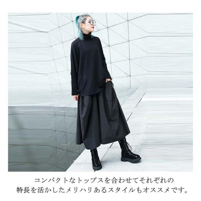 | アシンメトリーなストライプ柄スカート風ドレープワイドパンツです。 モードすぎないかつ個性的なファッションにおすすめです。 ウエストゴム仕様なのでリラックス感のある穿き心地で、毎日でも合わせたくなるストレスフリーなデザインになります。 コンパクトなトップスを合わせてそれぞれの特長を活かしたメリハリあるスタイルもオススメです。 | |