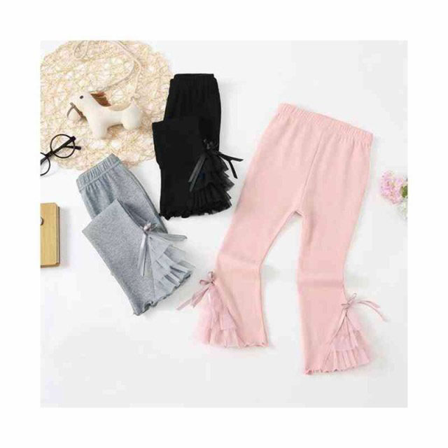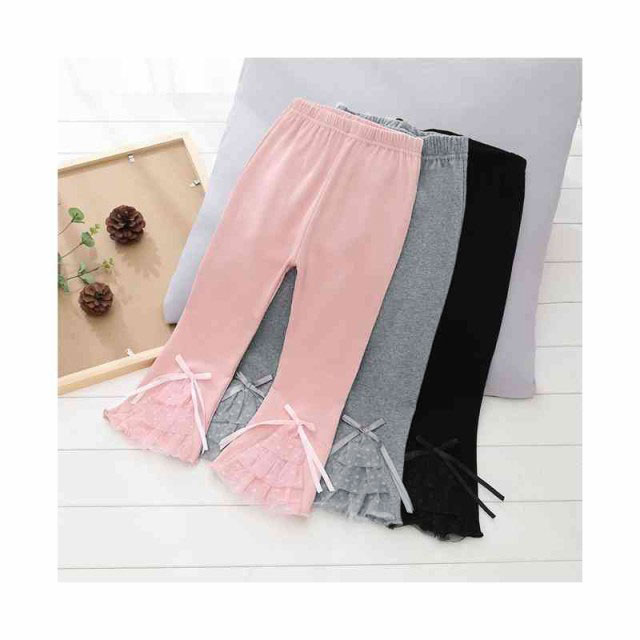 レースパンツ キッズ 春秋 フレアパンツ フリルパンツ リボンパンツ ロングパンツ おしゃれパンツ ボトムス ウエストゴム ロング丈 無地 シンプル カジュアル おしゃれ 送料無料 子供服
