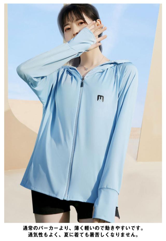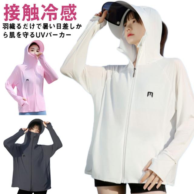 UVカット パーカー 指穴 レディース 着る 日焼け止め 紫外線 カット シンプル 無地 長袖 首元 UPF50+ ひんやり 接触冷感 UV ジップアップ ラッシュガード フード付き カーディガン 日焼け止め 軽量 長袖 春 夏 秋 薄手 吸水速乾 送料無料 ギフト プレゼント