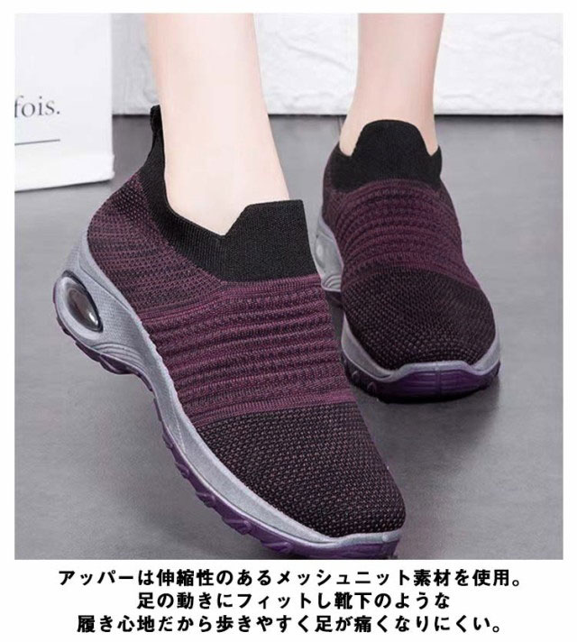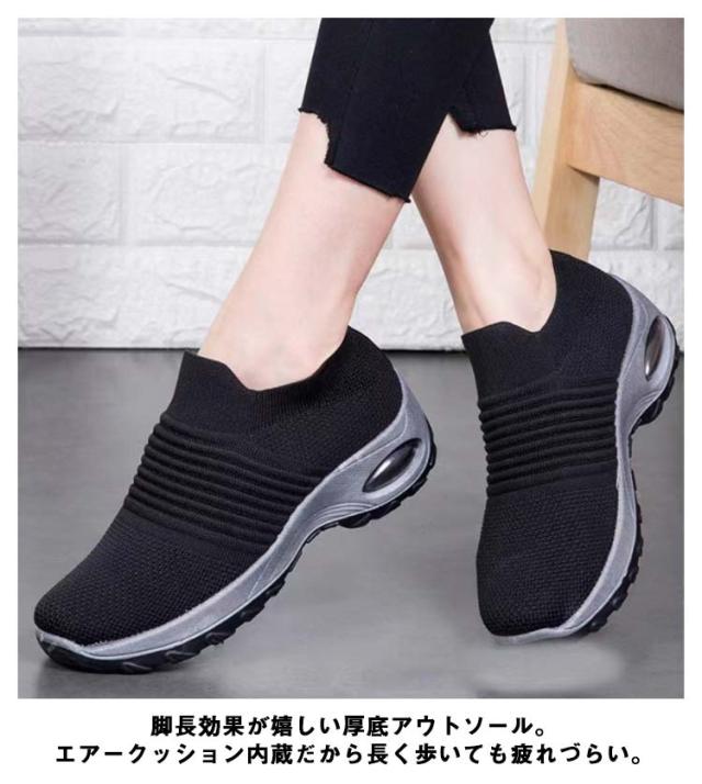 | ・楽に履けるデイリー使いにぴったりな厚底スニーカーが登場。 ・アッパーは伸縮性のあるメッシュニット素材を使用。足の動きにフィットし靴下のような履き心地だから歩きやすく足が痛くなりにくい。 ・脚長効果が嬉しい厚底アウトソール。エアークッション内蔵だから長く歩いても疲れづらい。 ・靴ひもがなく結ぶ手間がないから、急いでいる時やちょっとそこまでのお出かけにサッと履けるのが嬉しい♪ ・軽量で歩きやすいから普段履きはもちろんウォーキングなど軽い運動用に使用するのもおススメ◎ ・シンプルなデザインでどんなスタイルにも合わせやすい。 | |