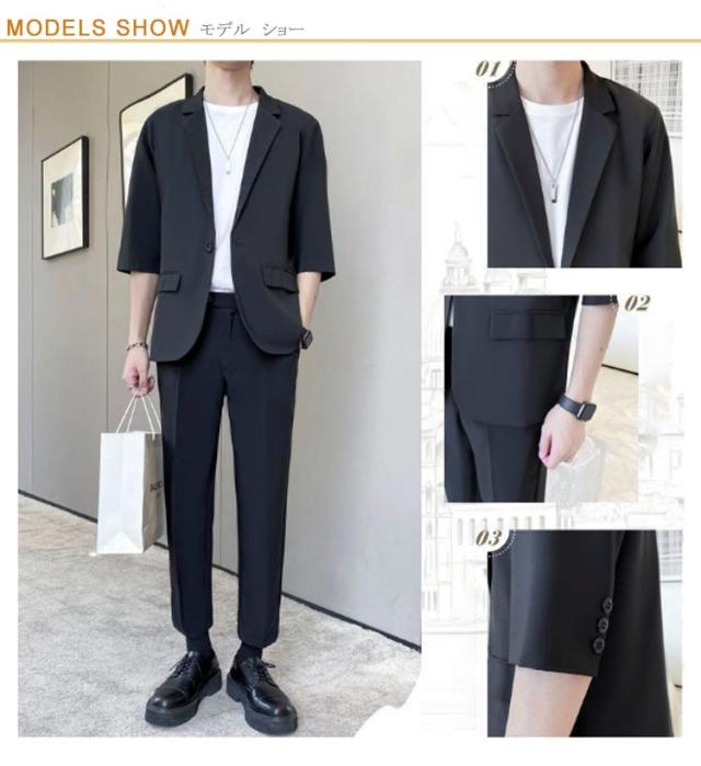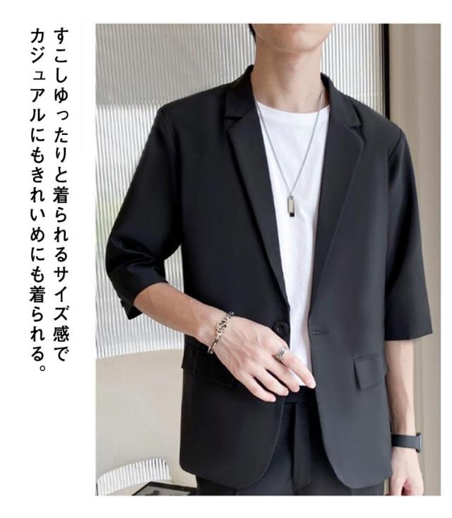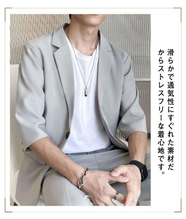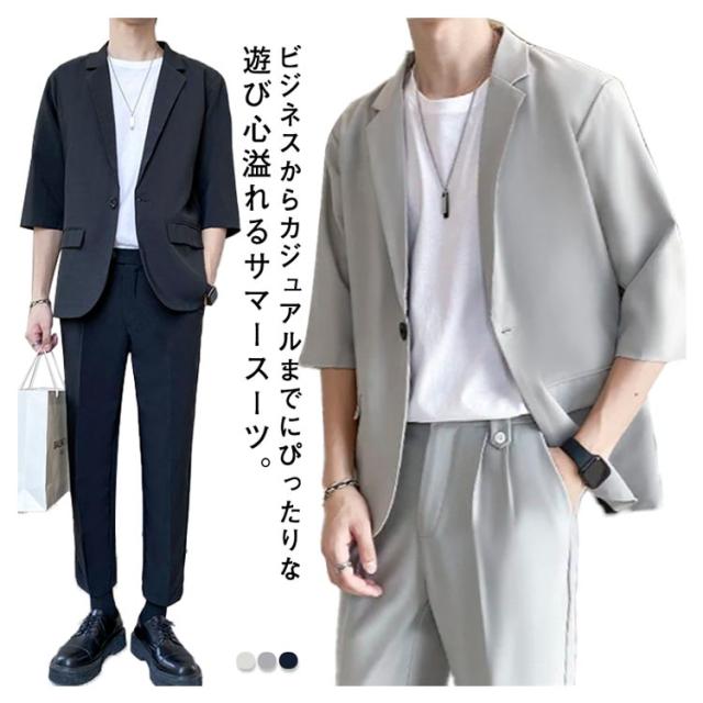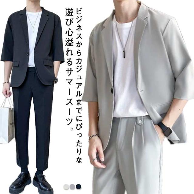 スーツ セットアップ メンズ 夏 カジュアル サマースーツ 送料無料 半袖ジャケット テーパードパンツ 5分袖 上下セット サマージャケット 大きサイズ ゆったり 無地 春夏 キレイめ