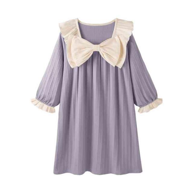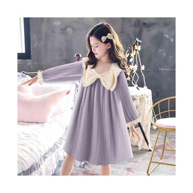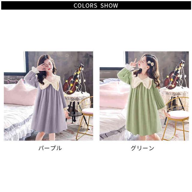 リボンパジャマ キッズ パジャマワンピース ロングワンピース リボン付き フリルワンピース 長袖 子供パジャマ 春秋 女の子 ルームパジャマ 子供服 おしゃれワンピース 寝巻き 女の子 女児 おしゃれ 送料無料 ジュニア ルームウエア かわいい