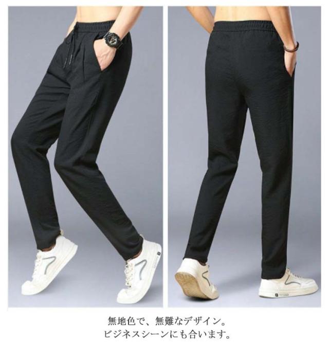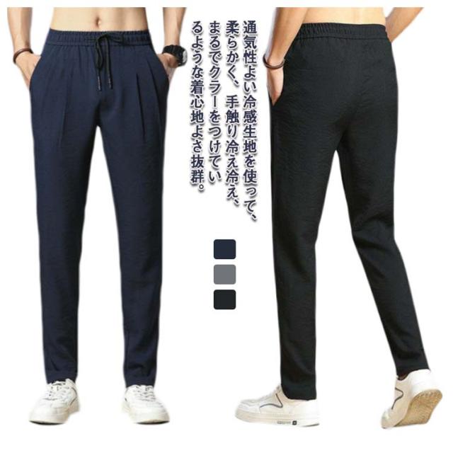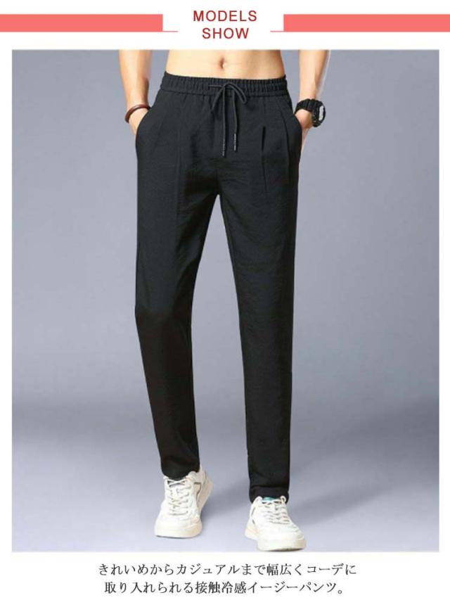 | 通気性よい冷感生地を使って、柔らかく、手触り冷え冷え、まるでクラーをつけているような着心地よさ抜群。 きれいめからカジュアルまで幅広くコーデに取り入れられる接触冷感イージーパンツ。 無地色で、無難なデザイン。ビジネスシーンにも合います。カジュアルな普段着としてのお出かけ服、デート服、私服などにはもちろん、通勤通学のパンツとしても行ける一着です。 弾性のある紐はしっかりとしたウエストバンドに合わせて、体型に合わせてサイズを調整できるので快適に穿くことができます、きれいなシルエットに魅せられます。 | |