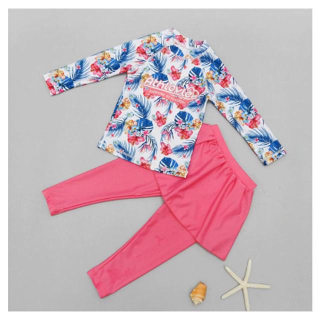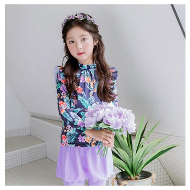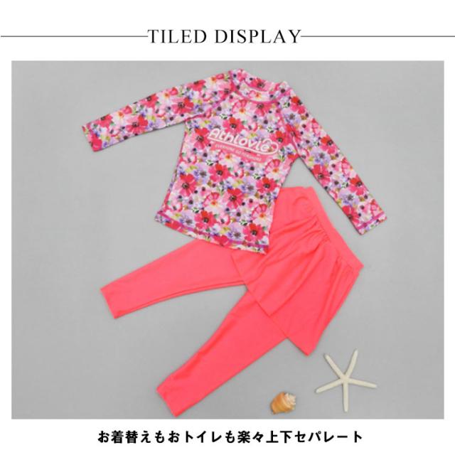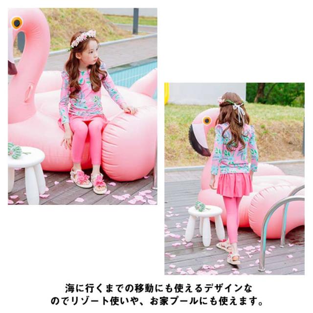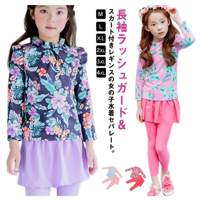 キッズ 水着 女の子 セパレート 上下セット 長袖 ラッシュガード スカート付き レギンス 露出控えめ 水陸両用 水着 80 90 100 110 120 130 140 cm 小学生 ジュニア 女児 水遊び プール 海 川 リゾート ボタニカル柄 花柄 総柄 おしゃれ