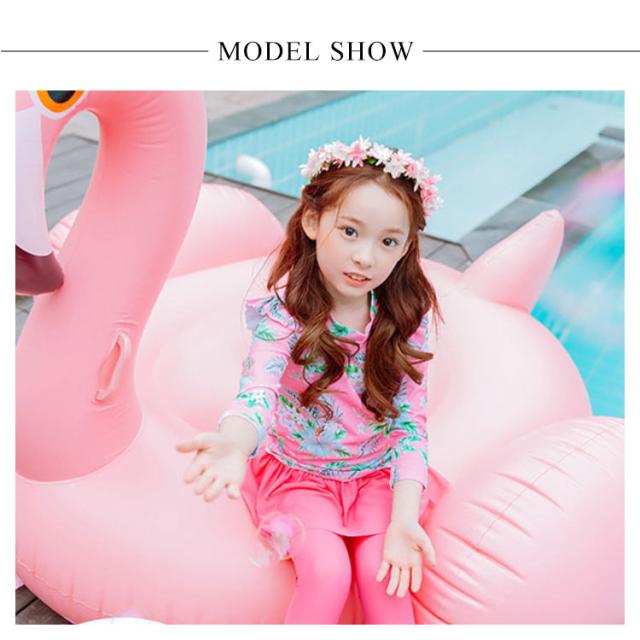 | 長袖ラッシュガード&スカート付きレギンスの女の子水着セパレート。 お肌の露出を抑えて夏の強い日差しからもしっかりガード 夏にぴったりなボタニカル柄! お着替えもおトイレも楽々上下セパレート スカート付きレギンスで露出控えめママも安心 洋服感覚で安心して着られ、着脱のしやすい一体型なところもポイントです。 海に行くまでの移動にも使えるデザインなのでリゾート使いや、お家プールにも使えます。 | |