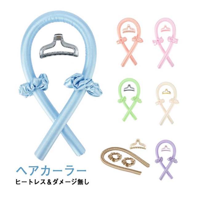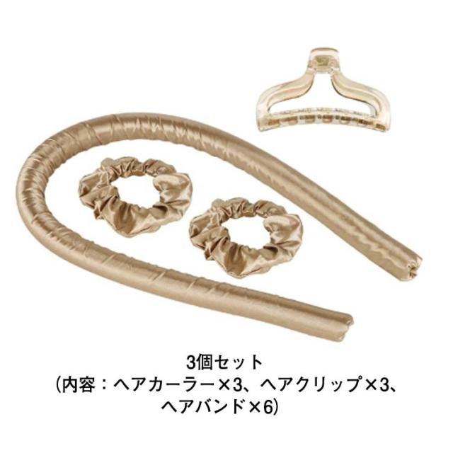 3点セット!ヒートレスカール 太め ロング シルク調 人気 ミディアム ヘアカーラー 巻き髪 寝ながら ヘアアレンジ ヒートレスカーラー 手巻きカーラー 熱を使わない 送料無料