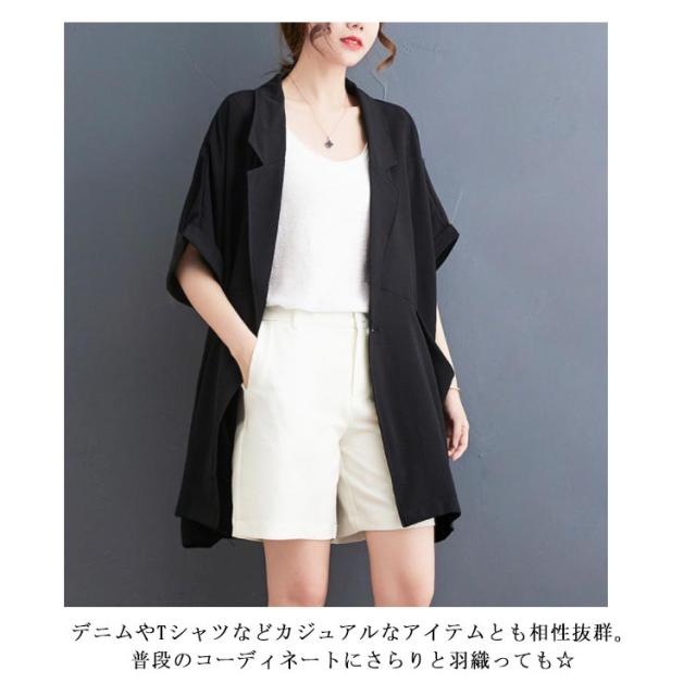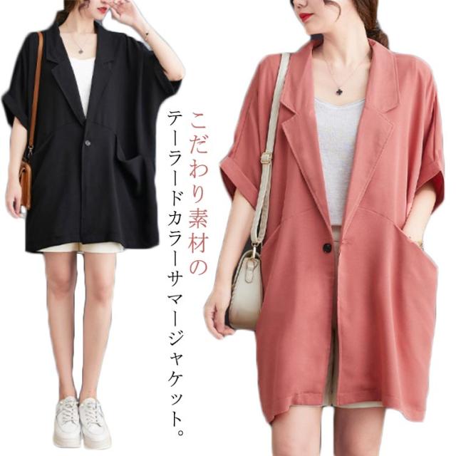 サマージャケット レディース テーラードジャケット スーツジャケット 半袖 サマースーツ カジュアルスーツ ジャケット 冷感 アイスシルク 薄手 涼しい 羽織 上着 ゆったり 通勤 通学 お呼ばれ パーティー お出かけ 送料無料