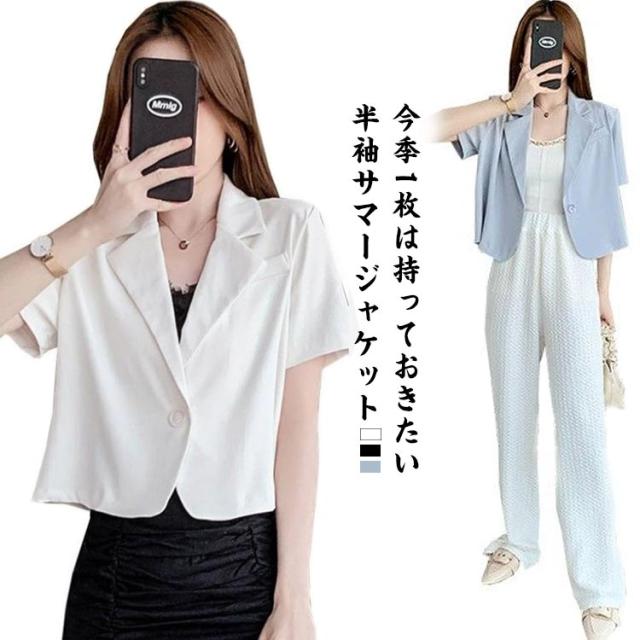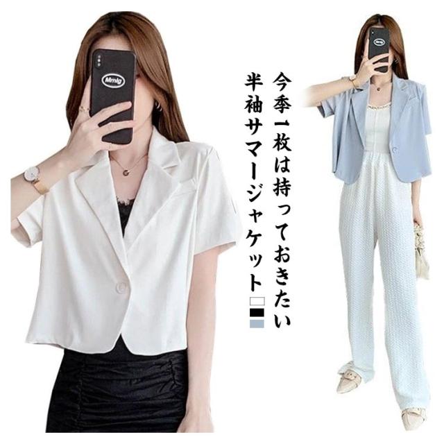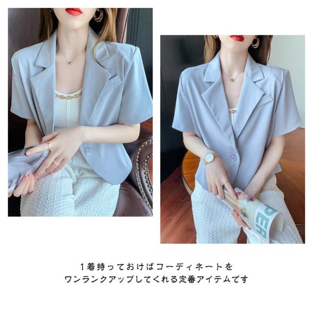 サマージャケット 半袖 レディース テーラードジャケット スーツジャケット 春夏 おしゃれ カジュアル 半袖ジャケット きれいめ ジャケット 上品 着痩せ スリム 韓国風 通勤 オシャレ 無地 通勤 オフィス 普段着 お出かけ 結婚式 披露宴 普段使い ギフト 送料無料